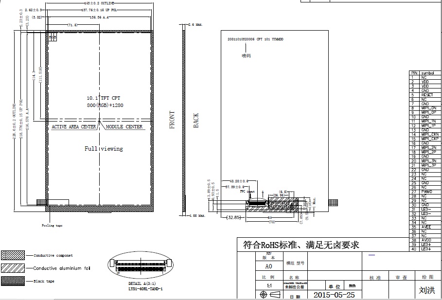 | 关键描述: | 10.1寸, 800*1280, 亮度300, 40pin, MIPI I/F, IPS 液晶模组 |