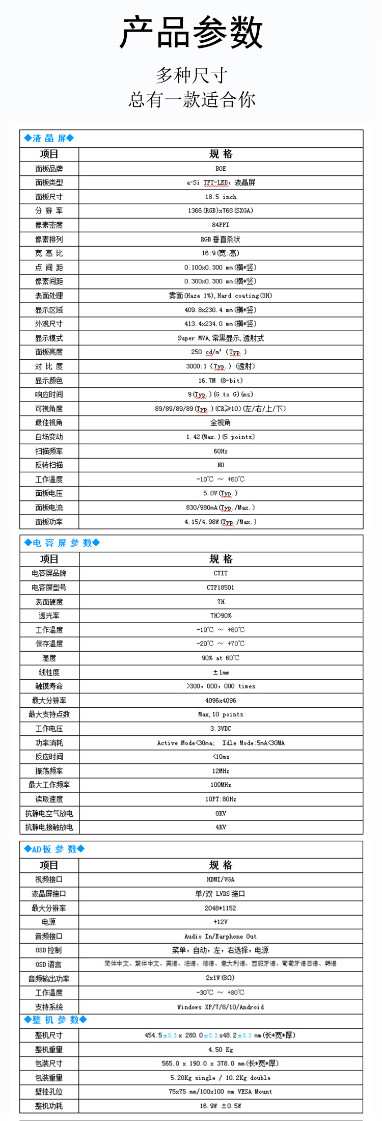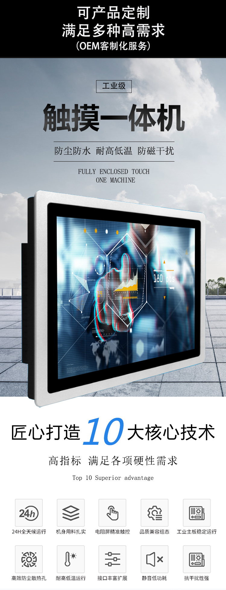 | 关键描述: | 工业10.1/13.3/15/17/18.5/19/21.5寸电容触摸电脑安卓触控一体机 |