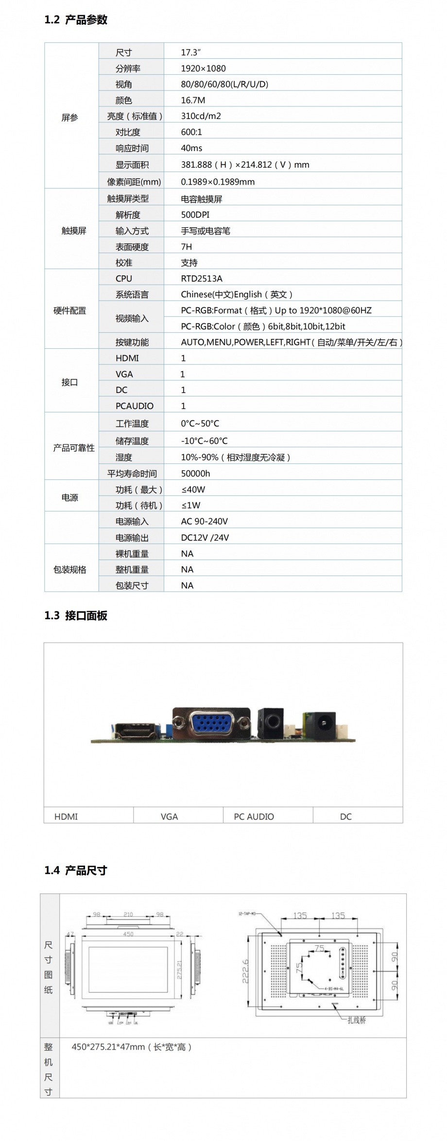 | 关键描述: | 17.3寸电容式触摸屏 安卓 X86工业工控一体机嵌入式温压抗干扰电容触控平板触摸屏显示器1920×1080 310cd/m² |