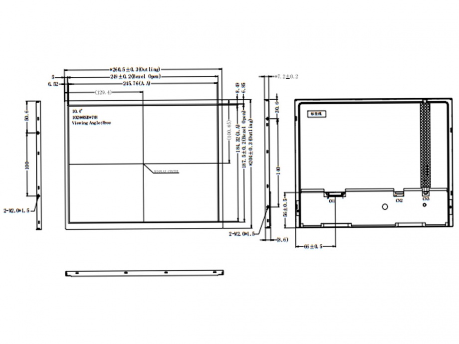 | 显示尺寸: | 245.76 (宽) × 184.32 (高) mm (A.A) |