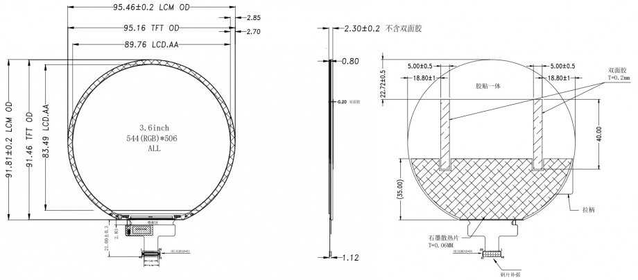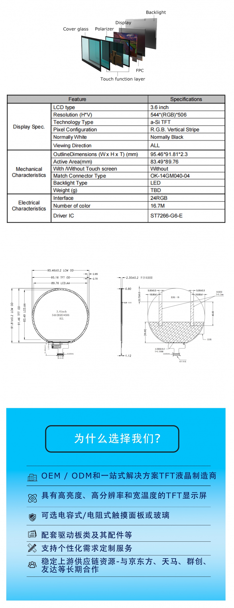 | 关键描述: | 3.6寸TFT液晶显示屏 544*506 580亮度 IPS液晶屏 40PINS RGB 宽温屏 |