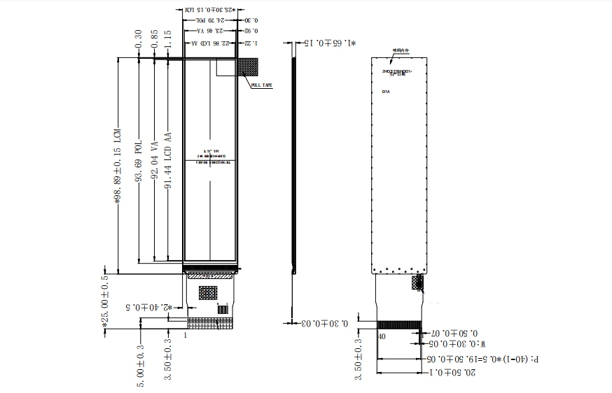 | 显示尺寸: | 22.86 (宽) × 91.44 (高) mm (A.A) |