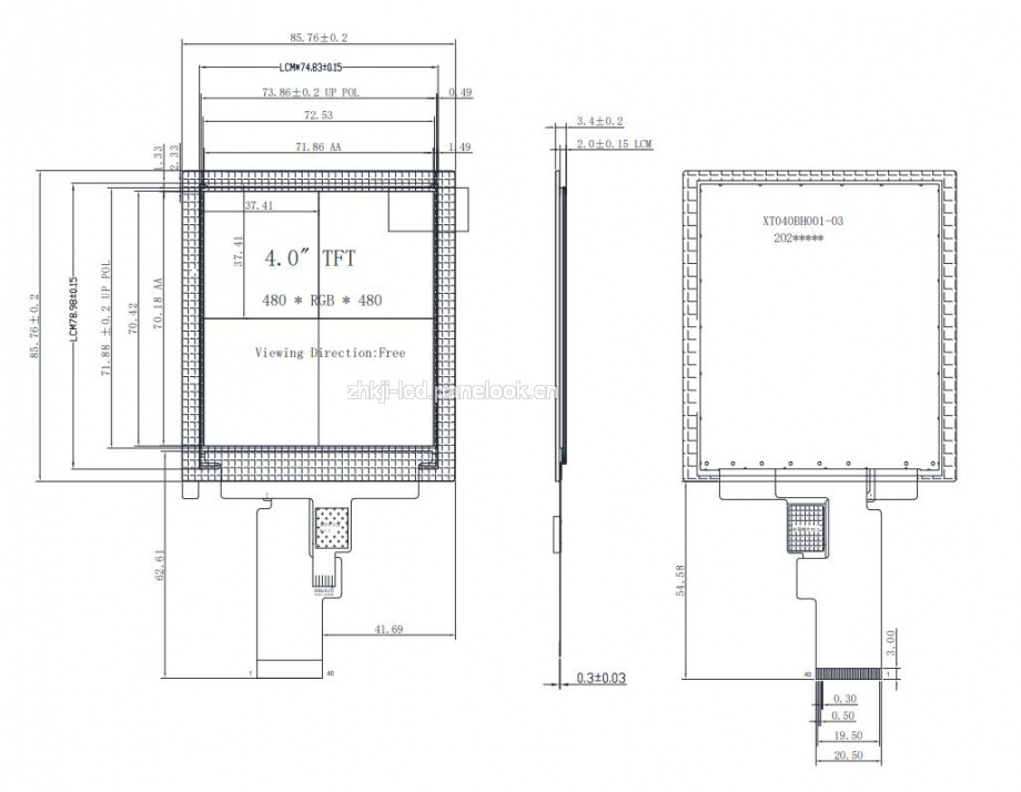 | 关键描述: | 4寸TFT液晶显示屏 480*480 350亮度 IPS液晶屏 40pins RGB 86盒子 |