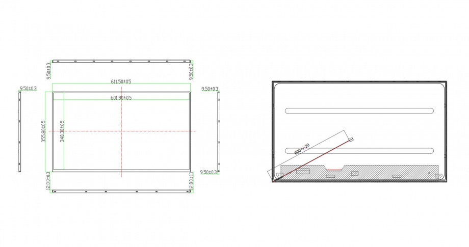 | 外观尺寸: | 611.5 (宽) × 355.8 (高) mm |