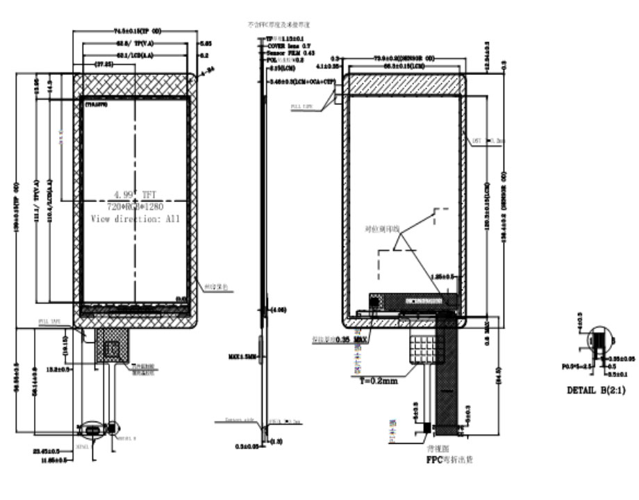 | 关键描述: | 5.0寸组装竖屏720 x 1280全视角TFT液晶模组350nits, 34pins MIPI带电容触摸屏IIC接口 |