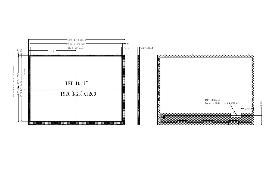 10.1寸1920*1200 TFT液晶模组1200nits超高亮户外可视 , 45pins LVDS 全视角 |
