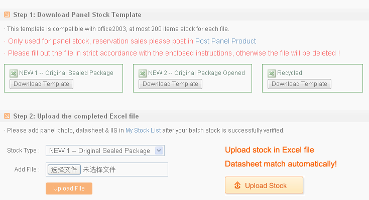 Stock of many models: Batch Upload Stock